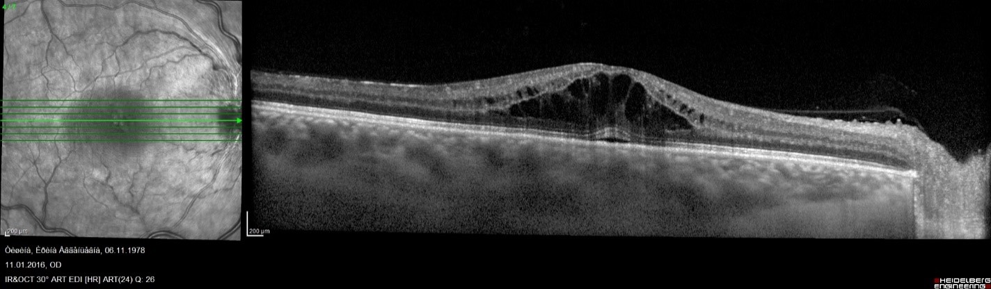 Обязательным методом обследования при обнаружении нарушения проходимости вен сетчатки является выполнение оптической когерентой томографии сетчатки (ОКТ) для оценки витреоретинального интерфейса, толщины и микроструктуры сетчатки в макулярной области, так как в 60-100% окклюзии центральной вены сетчатки и в 10% - ее ветвей, осложняются развитием макулярного отека.